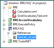 I have also included some code that shows how to call the vocabulary. And some code to show how to implement a .NET assembly that can be called from the BRE.