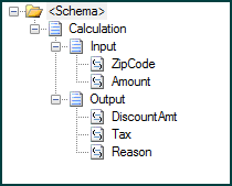 The first thing that you do in BizTalk is that you need to define the schemas that will contain the inputs and output of the message that you are dealing with. So a simple schema: