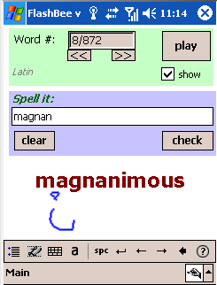 Geek time.! I have an old iPaq 5555 that is pretty much sitting collecting dust. So I decided to write a program that will allow him to practice those words. A pocketPC seems to be the perfect platform for it, since it has built-in support for hand-writing and sound. So it is like having an interactive flash card.